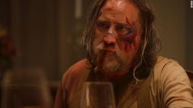 Robin Felds, played by Nicholas Cage, speaks his first line (to the pig) about nine minutes in.